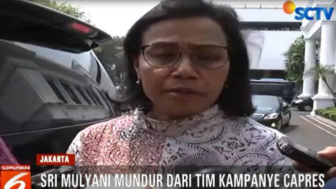 Namun, Sri Mulyani menyatakan mundur dari Tim Kampanye Nasional pasangan Joko Widodo-Ma'ruf Amin. Keputusan ini diambil sesuai dengan arahan Presiden yang ingin Menteri keuangan fokus mengelola keuangan negara.
