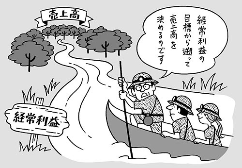 年間売上高の目標を基に月割りの計画を立てたり、その売上高から利益目標を計算したりする社長が多いのですが、売り上げを起点にする計画は間違いです。経営計画は必ず経常利益の目標を定めてから、それを実現する目標売上高を決めなくてはいけません。