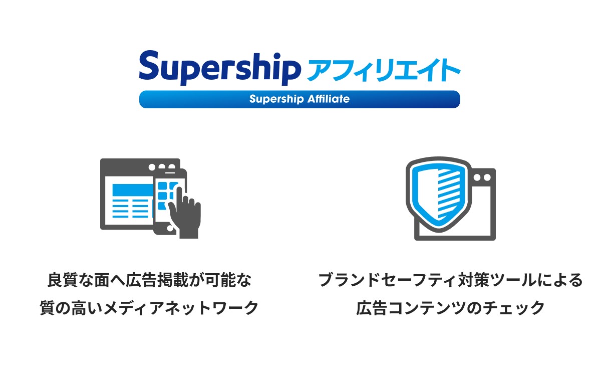 『Supershipアフィリエイト』」は、KDDIグループであるSupershipの強みを活かし、同グループのmedibaが運営する「au web ポータル」をはじめ、大手企業をメディアパートナーとする質の高いメディアネットワークの構築を予定している。そのため、広告主は良質なWEBサイトへ広告を掲載することができ、意図しないコンテンツを扱うWEBサイトへ広告が掲載されるブランド棄損のリスクを回避することができる。